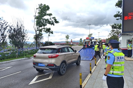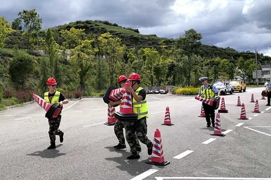 隧管隊(duì)員協(xié)同交警進(jìn)行現(xiàn)場(chǎng)防護(hù)(佘郡平 攝)