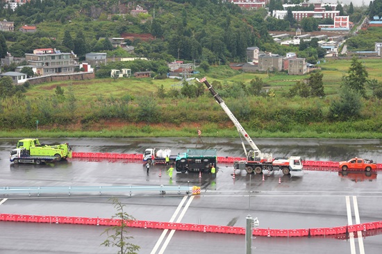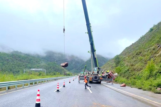 8月23日上午5時(shí),昆楚高速響水關(guān)隧道出口處,因暴雨引發(fā)邊坡線外落石,三輛過(guò)往車輛避讓不及發(fā)生單方事故。運(yùn)行監(jiān)測(cè)調(diào)度中心第一時(shí)間鎖定險(xiǎn)情位置,并利用路上門架信息屏示警后方車輛減速慢行,指揮部立即調(diào)度“一路多方”救援力量趕赴現(xiàn)場(chǎng)。隊(duì)員們抵達(dá)后,迅速清理路面落石,對(duì)受損車輛進(jìn)行安全轉(zhuǎn)移,并協(xié)助交警進(jìn)行交通管制。全體救援人員冒雨奮戰(zhàn)7小時(shí),順利完成落石清除及事故車施救工作,道路恢復(fù)正常通行。該事故未造成人員傷亡。
