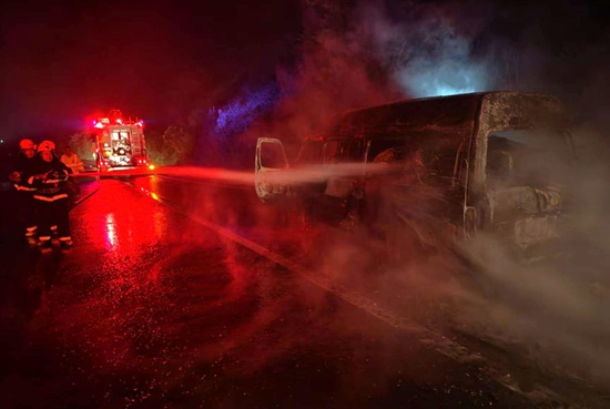 8月24日22時(shí),昆楚高速大理方向近勤豐服務(wù)區(qū)處,一輛滿載貨物的小貨車突發(fā)自燃。云南指揮部谷律隧管站接警后,立即調(diào)派2輛巡查車、1輛消防車、9名隊(duì)員的救援小組趕赴現(xiàn)場(chǎng)。救援力量抵達(dá)后,第一時(shí)間對(duì)事發(fā)路段實(shí)施交通管制,設(shè)置警戒區(qū)域,有效避免了二次事故風(fēng)險(xiǎn)。經(jīng)確認(rèn),貨車駕駛員已及時(shí)撤離,事故未造成人員傷亡。消防人員架設(shè)兩支高壓水槍,僅用6分鐘即控制明火。隨后抵達(dá)的地方職業(yè)消防隊(duì)配合開(kāi)展后續(xù)處置,通過(guò)翻動(dòng)內(nèi)部貨物、全面降溫等措施,確?;馂?zāi)隱患徹底消除。