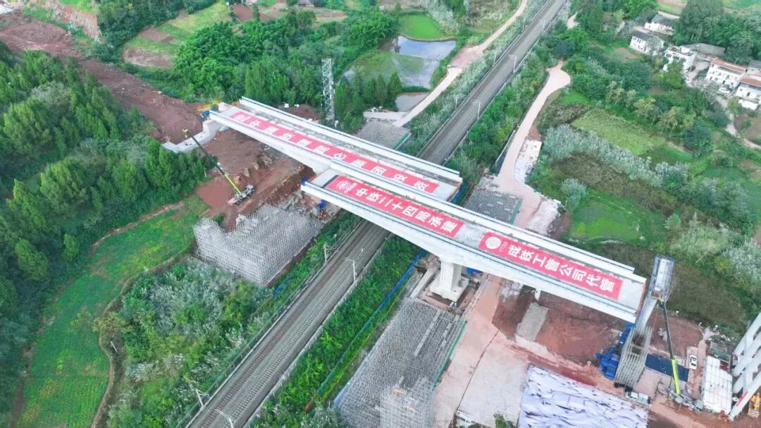 真武宮大橋是南潼高速公路全線唯一一座涉鐵轉(zhuǎn)體橋,上跨西南地區(qū)首條快速鐵路——達(dá)成鐵路。橋梁施工需在確保鐵路運(yùn)輸安全的前提下,將單幅長(zhǎng)108米、寬15.85米,單體重約6000噸,總重超1.2萬(wàn)噸的巨橋精準(zhǔn)轉(zhuǎn)體落位,安全風(fēng)險(xiǎn)和施工難度極高。為此,項(xiàng)目團(tuán)隊(duì)加強(qiáng)多方協(xié)調(diào),強(qiáng)化球鉸數(shù)據(jù)監(jiān)測(cè),及時(shí)組織“跨鐵施工”安全培訓(xùn),全力夯實(shí)轉(zhuǎn)體過(guò)程的安全保障。