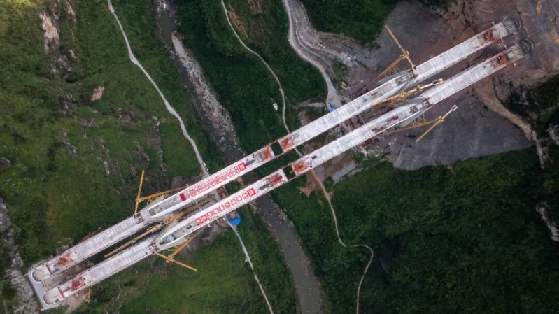 9月5日,由昆侖集團(tuán)投資建設(shè)、中國鐵建大橋局承建的烏當(dāng)(羊昌)至長順高速公路控制性工程——金旗特大橋順利合龍。該橋在塔梁固結(jié)體系的雙塔雙索面斜拉橋類型中,建設(shè)規(guī)模與橋梁高度均為世界第一,為有“橋梁博物館”美譽(yù)的貴州再添新地標(biāo)。